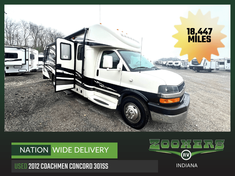 Discover the 2012 Coachmen Concord 301SS, a reliable Class C RV perfect for your next adventure. With a length of 32 ft and the ability to sleep 6 comfortably, this used model is designed for family travel and outdoor excursions. It features a well-appointed kitchen located at the front, a private bathroom at the rear, and a power awning for added convenience. This RV is equipped with a 13,500 BTU air conditioning system and a powerful heater, ensuring comfort in any season. With only 18,447 miles on the odometer, it's ready to hit the road. Schedule your tour today!