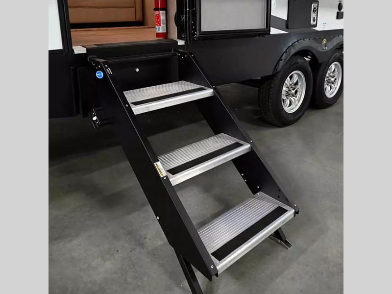 You can make yourself at home with solid pressed membrane countertops, interior LED lights, and black roller shades for added privacy. The outside shower with hot and cold water will let you easily wash off camp gear, and the marine grade exterior speakers will allow you to be the life of the campground. You will also appreciate the universal docking station for easy access to your hookups, plus a high-output on-demand tankless water heater for hot water when you need it.
