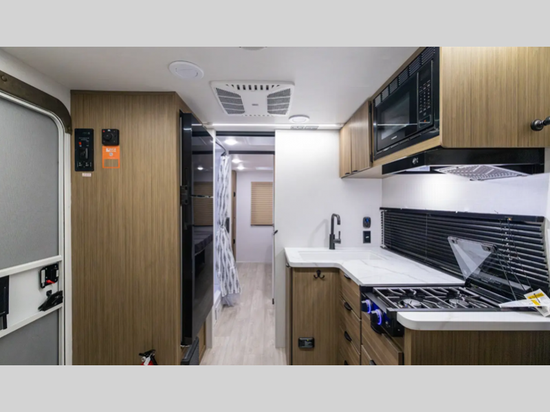 Sleeps 2 Length 22 ft 11 in Ext Width 7 ft 6 in Hitch Weight 515 lbs Dry Weight 4299 lbs Cargo Capacity 1316 lbs Fresh Water Capacity 39 gals Grey Water Capacity 30 gals Black Water Capacity 30 gals Furnace BTU 20000 btu Available Beds Queen Refrigerator Type Dual Swinging 12V Cooktop Burners 2 Shower Size 36" x 24" Number of Awnings 1 Water Heater Type On Demand AC BTU 13500 btu Awning Info 15' Electric with LED Lights Shower Type Standard Electrical Service 30 amp Similar Floorplans