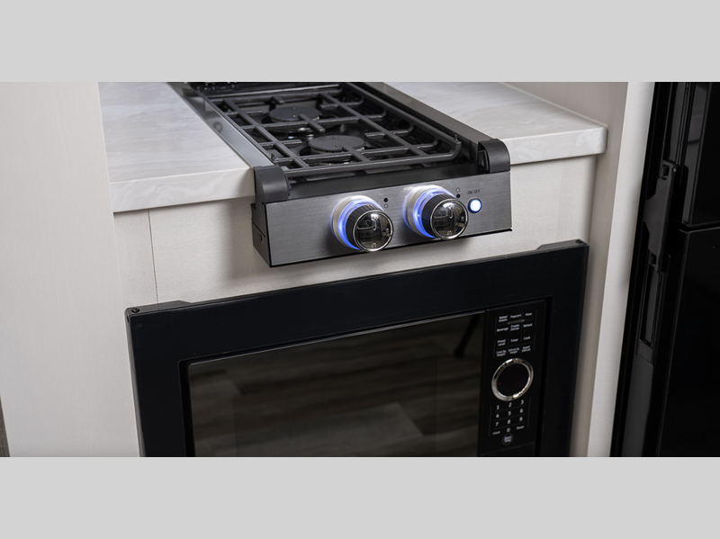 Additional stand-out features include a Rock Solid jacks helps you achieve a level trailer with less effort and time. You algo have an on demand water heater, and a Magnum Truss roof system, tested to withstand 4,500 lbs! Inside, you'll be met with residential-style seamless countertops throughout, spacious handcrafted, hardwood door/drawer fronts, and residential vinyl flooring throughout that will be easy to keep clean.
