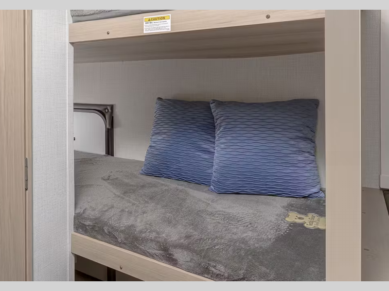 Sleeps 4 Slides 1 Length 22 ft 1 in Ext Height 10 ft 7 in Interior Color Cashmere, Liam Hitch Weight 490 lbs Dry Weight 4331 lbs Cargo Capacity 1169 lbs Fresh Water Capacity 37 gals Grey Water Capacity 30 gals Black Water Capacity 30 gals Tire Size ST235/75R15D Furnace BTU 20000 btu Number Of Bunks 2 Available Beds Full Refrigerator Size 4.5 cu ft Cooktop Burners 3 Number of Awnings 1 Axle Weight 5100 lbs LP Tank Capacity 20 lbs. Water Heater Type On Demand AC BTU 18000 btu TV Info 32" HDTV Awning Info 14' Power w/Lights and Adjustable Arms Axle Count 1 Number of LP Tanks 2 Shower Type Standard Similar Floorplans